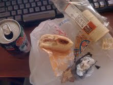 After five weeks (47 left to go) on island I have finally taken the culture plunge. I went to several shops out in town and decided to buy my dinner at one the very popular Laswson convenience stores (think 7-11 but way better). One of the items I selected was Onigiri (though I didn't know that's what it was at the time). It turns out that they are color coded, seaweed rapped, triangular "rice balls" (thank you google). The color denotes what's in the middle. I based my selection on logic, if they stock a lot and there are few left, it's probably a good one. Though I realized after the fact that my logic was based on the assumption that "good" to an Okinawan would taste good to me. Fortunately my guess paid off and I selected blue, which I was pleased to discover is tuna with mayo. I also had some kind of pizza filled dough ball, sponge cake rounds and a cherry flavored alcoholic drink.